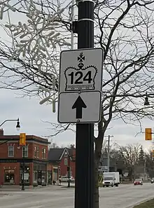 Erroneous signage in Collingwood showing former Highway 24 as "Highway 124" due to wrong use of a provincial highway shield rather than the proper Simcoe County Road 124 shield (the real Highway 124 actually runs between Parry Sound and Sundridge)
