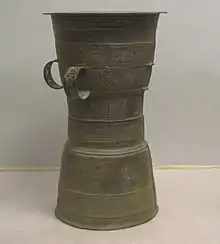 Pejeng drum (also Pejeng-type drum) is a type of Bronze Age kettledrum which was produced across the archipelago of Indonesia between the 1st and 2nd century AD. They are one of Indonesia's finest example of metalworking.[1] Examples of Bronze Age Pejeng drum, such as the ancient Moon of Pejeng, is the largest bronze drum in the world, indicating the advance of metal casting technique and the active trade in the archipelago in the first millennium AD.