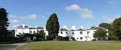 Pembroke Lodge is an initial, mainstream category listed[1] (Grade II) Georgian two-storey large house in Richmond Park in the London Borough of Richmond upon Thames. It sits on high ground with views across the Thames valley to Windsor, the Chilterns and hills in the Borough of Runnymede. It has 11 acres (4.5 ha) of landscaped grounds, including part of King Henry's Mound from which there is a protected view of St Paul's Cathedral in the City of London. The grounds also include memorials to the 18th-century poet James Thomson and the 20th-century rock-and-roll singer and lyricist Ian Dury.