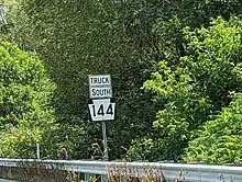 Pennsylvania Route 144 Truck is a series of truck routes bypassing the southernmost segment on PA 144 in Centre County, Pennsylvania on which trucks over 10 tons except for local deliveries are prohibited. The route follows US 322 and PA 26 throughout its length. A second Truck PA 144 follows PA 45, US 322, and PA 26. It was signed in 2009.