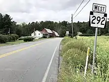 Pennsylvania Route 292 (PA 292) is an 11.5-mile-long (18.5 km) state highway located in Wyoming County, Pennsylvania. The western terminus is at PA 29 near Evans Falls. The eastern terminus is at PA 92 in Exeter Township. The route is a two-lane undivided road that passes through rural areas in the southern part of Wyoming County, serving the communities of Vernon and Center Moreland. PA 292 was designated in 1928 between PA 92 (now PA 29) and U.S. Route 309 (US 309, now PA 92), with the route east of Center Moreland following Creamery Road, Schoolhouse Road, and Keelersburg Road. The route was moved to its current alignment east of Center Moreland by 1930 and the entire route was paved in the 1930s.