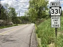 Pennsylvania Route 331 Truck is a truck route bypassing a weight-restricted bridge over a branch over Brush Run on which trucks over 36 tons and combination loads over 40 tons are prohibited. The route follows PA 231 and PA 844 through Washington County, Pennsylvania. PA 331 Truck was signed in 2013.