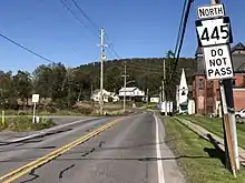 Pennsylvania Route 445 (PA 445) is a 12-mile-long (19 km) state highway located in Centre County, Pennsylvania. The southern terminus is at PA 45 in Millheim. The northern terminus is at PA 64 in Nittany.