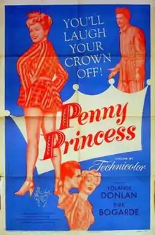 Penny Princess is a 1952 British Technicolor comedy film written and directed by Val Guest and starring Yolande Donlan, Dirk Bogarde and A. E. Matthews. It was made by Guest for his own production company, Conquest Productions. The film stars his future wife Donlan, who was Guest's production company partner, and features Reginald Beckwith, the other partner in Conquest Productions.[1] It was released by General Film Distributors. It was distributed in America the following year by Universal Pictures.