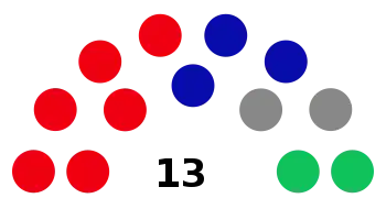 Wollongong City Council is composed of thirteen councillors, including the Lord Mayor. The Lord Mayor is directly elected while the twelve other Councillors are elected proportionally as three separate wards, each electing four Councillors. Under the Local Government (Shellharbour and Wollongong Elections) Act, 2011 (NSW) Councillors were elected to hold office until September 2016, however delays due to amalgamation proposals pushed the election back until September 2017, with the council to be elected for a three-year term. The most recent election was held on 4 December 2021 and the makeup of the council, including the Lord Mayor, is as follows:[30][31] In 2018, as a result of Cr Connor's resignation, there was a by-election held for residents of Ward 3. Ann Martin, Labor, who had previously held a seat on Wollongong Council, was resoundingly elected, with just under 50% of the primary vote.