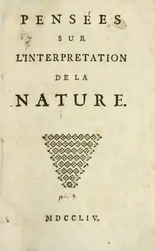 On the interpretation of Nature (or Thoughts on the interpretation of Nature, French: Pensees sur l'interpretation de la nature) is a 1754 book written by Denis Diderot.
