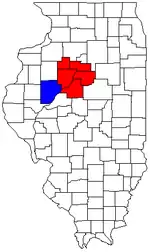 The Peoria Metropolitan Statistical Area, as defined by the United States Census Bureau, is an area consisting of six counties in Central Illinois, anchored by the city of Peoria. As of the 2020 census, the area had a population of 402,391.[1] The City of Peoria, according to the 2020 US Census Bureau, has 113,150 people.[2]