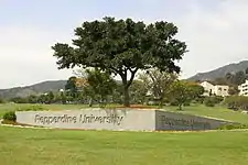 The Pepperdine University Rick J. Caruso School of Law (formerly Pepperdine University School of Law) is the law school of Pepperdine University, a private research university in Los Angeles County, California. The school offers the Juris Doctor (JD), and various Masters of Laws (LLM) options in Dispute Resolution, International Commercial Arbitration, United States Law, and Entertainment, Media, and Sports Law.[4] The school also offers joint degrees with its JD and Master of Dispute Resolution (MDR) in partnership with other Pepperdine University graduate schools. The school now offers an online Master of Legal Studies program and an online Master of Dispute Resolution program.[5]