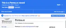 - ↑ "Perma.cc for individual users". Retrieved March 11, 2017.