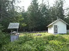 Peter Roose settled on one of these prairies when he immigrated to the Ozette Lake area, claiming 160 acres (65 ha) under the Homestead Act.[3] Fellow Swedish immigrant Lars Ahlstrom settled on the other, about one and a quarter miles (2.0 km)] to the south, at about the same time. Where Ahlstrom's prairie had a Makah cabin he could live in initially, Roose, a carpenter by trade, built all his own structures from timber he cut and milled on site.[2] He built a log cabin to live in at first, along with a storage shed/root cellar, well, barn, and outhouse. He built a sawmill, using a boat engine salvaged from a shipwreck on the nearby beach for power. Some time in the 1930s he built the two-room house currently standing on the site, out of milled lumber from his own sawmill. He also built cedar picket fencing to delineate various areas of the homestead. Still standing on the site are the shed, well, barn, fencing, and the second house. The outhouse is barely standing and the sawmill has collapsed. The original cabin is gone.