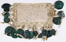 The original sealed copy of the declaration of forfeiture against Peter for rebellion (1230)