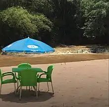 The low waterfalls empty into a small lake with a sandy beach.[3] They are an attraction to tourists who come to swim, or eat at the nearby restaurant.[4] The Lola ya Bonobo sanctuary for endangered bonobos, which is adjacent to the falls, is also of interest to tourists. The sanctuary was founded by Claudine André of the NGO The Friends of Bonobos in Congo, in 1994, and has been located at the Petites Chutes de la Lukaya since 2002.[5]