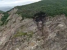 The aircraft was on final approach for landing when contact was lost about 10 km (6.2 mi) away from Palana's airport. No go-around was reported by ATC.[9] The weather in the area was cloudy.[10] The aircraft reportedly collided with a steep cliff with a maximum elevation of 263 metres (863 ft).[7][11] When it collided with the cliff, it was at an altitude of 200 metres (660 ft), below the minimum height for the approach, and was outside of the proper approach path. Upon impact, the aircraft was completely destroyed.[11] Only a portion of the plane's tail remained on the cliff after the impact; the rest of the debris slid down the cliff and into the Sea of Okhotsk, leaving only a skid mark on the cliff to indicate where the accident had taken place.[12]