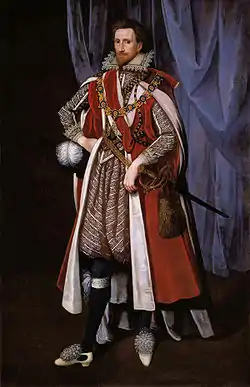 Philip Herbert and his brother William, performed in The Masque of Indian and China Knights at Hampton Court on 1 January 1604.[5] On 27 December 1604, with James I's enthusiastic urging (he played a prominent role in the ceremony and provided generous financial gifts for the bride), Philip married Susan de Vere, the youngest daughter of Edward de Vere, 17th Earl of Oxford. That same year he was elected Member of Parliament for Glamorgan.