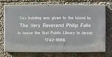 In 1736 he presented to his fellow-islanders his collection of books. With another donation by Canon Dumaresq (died 1805), this benefaction developed into a large library, for which the States provided a building in Saint Helier.
