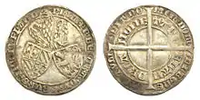 Flanders, double groat or 'jangelaar', struck in Gent under Philip the Bold (1384–1404) with the arms of Burgundy and Flanders.