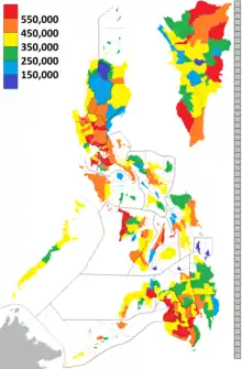 - ↑ "Population Counts by Legislative District (Based on the 2015 Census of Population)". Philippine Statistics Authority. July 16, 2016. Retrieved December 1, 2016.