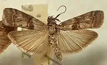 Phycita roborella is a moth of the family Pyralidae. It is – under its junior synonym Tinea spissicella – the type species of its genus Phycita, and by extension of the subfamily Phycitinae.
