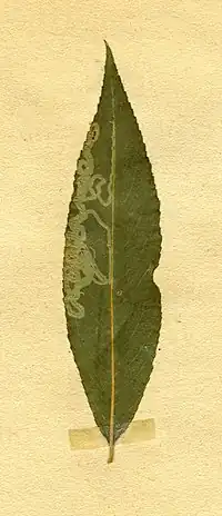 Phyllocnistis valentinensis mines on Salix fragilis | |