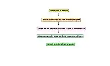 It is important when using this technique to decide which genome your sequence should be aligned to. More divergent species will have less sequence similarity between orthologous genes. Therefore, the key is to pick species that are related enough to detect homology, but divergent enough to maximize non-alignment "noise". Step wise approach to Phylogenetic footprinting consists of :