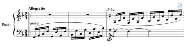 The finale, again in F major, is a cheerful moto perpetuo sonata form movement in 2