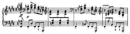 2 | ![]() Mm. 13–24. Languido theme. All the harmonies are related to an F♯-dominant chord. |
