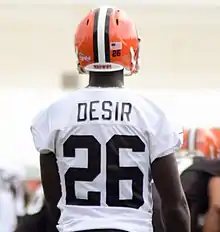 During training camp, Desir competed for a roster spot as the third cornerback against Justin Gilbert, Charles Gaines, Robert Nelson, and K'Waun Williams.[15] Head coach Mike Pettine named Desir the fourth cornerback on the Cleveland Browns' depth chart to begin the regular season. He was listed on the depth chart behind Joe Haden, Tramon Williams, and K'Waun Williams.[16] In Week 6, Desir collected a season-high 12 combined tackles (ten solo) and deflected one pass during a 26–23 loss against the Denver Broncos. He was inactive during the Browns' Week 12 loss against the Baltimore Ravens and a Week 14 victory against the San Francisco 49ers.[17][18] Desir finished the 2015 NFL season with 37 combined tackles (30 solo) and five pass deflections in 14 games and six starts.[14]