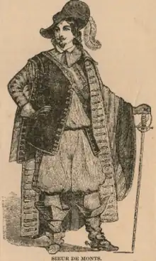 Pierre Dugua de Mons (or Du Gua de Monts; c. 1558 – 1628) was a French merchant, explorer and colonizer. A Calvinist, he was born in the Château de Mons, in Royan, Saintonge (southwestern France) and founded the first permanent French settlement in Canada. He was Lieutenant General of New France from 1603 to 1610. He travelled to northeastern North America for the first time in 1599 with Pierre de Chauvin de Tonnetuit.