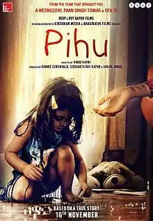 Pihu is a 2018 Indian drama thriller film written and directed by Vinod Kapri and jointly produced by Ronnie Screwvala, Siddharth Roy Kapur and Shilpa Jindal.[2][3] It stars Pihu (Myra Vishwakarma), a two-year-old girl, in the title role, who gets trapped inside her house with no escape.[4] The film was shot in the Gandharav society of Greater Noida. The film was dedicated to Kirshan Kumar, who died from cardiac arrest.