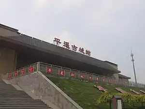 Pingyaogucheng railway station (Chinese: 平遥古城站; lit. 'Pingyao Ancient City railway station'), is a railway station of Datong–Xi'an Passenger Railway that is located between Houji Village and Ducun Village, Pingyao County, Jinzhong, Shanxi, China and about 8 km (5 miles) from Pingyao railway station and 10 km (6 miles) from the Pingyao Ancient City.