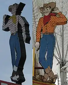 River Rick is the name of the neon sign that resembles a cowboy that was erected at the Pioneer Hotel & Gambling Hall in 1981. He is also referred to by some as Laughlin Lou,[6] although the hotel itself calls him River Rick.[7]