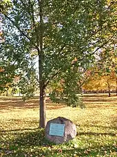 Plainfield has long been associated with the National Road, U.S. Route 40, which goes through town as Main Street. One incident which brought Plainfield national attention occurred in 1842 when former President Martin Van Buren was spilled deliberately from his stagecoach into the thick mud of the highway. The practical joke came as a result of Van Buren's vetoing a bill from Congress to improve the highway, a move which angered Western settlers. When Van Buren came through Plainfield on a swing to shore up his popularity for the 1844 election, a group of perpetrators set up the incident. The elm tree whose roots caused the president's carriage to topple became known as the Van Buren Elm. An elementary school near this site is named Van Buren Elementary School.[7][8][9]
