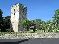 The most important building in the village is the Church of St James (a grade I listed building), the nave of which dates from the Norman period. In plan it is typical of the simplest of churches from the Norman period, consisting of a short rectangular nave with a squat west tower. A chancel was added in c. 1300 in the form of a simple continuation of the nave. The linear character of the building is carried into the strong west tower, which rises in three stages and is crowned by an embattled parapet. The top or belfry stage was added in the 14th century. The fine timber porch was added in 1639.[4]