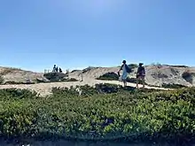 The southern portion of the original Playa del Rey development, which came to be known as Surfridge, is now vacant. Between 1966 and 1975, the houses that were once there were either moved or demolished to facilitate the expansion of Los Angeles International Airport (LAX) and to address concerns about the noise of increasing jet plane traffic. The noise from the flights made it less desirable to live on the dunes above the ocean under the LAX flight path. The City of Los Angeles condemned the southern section of Playa del Rey under the power of eminent domain and purchased all of the homes.[8] Today, one can see only barbed-wire fences protecting vacant land and old streets where houses once sat. Recent LAX rejuvenation plans call for the city to finally remove the old streets that still line the empty neighborhood. The condemned areas of the community are now a protected habitat of the endangered El Segundo blue butterfly.[9]