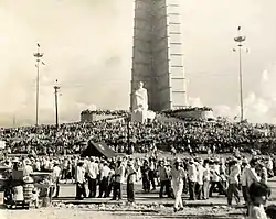 This project was conceived as part of the wave of architectural and infrastructure works carried out by the government of Fulgencio Batista. The Plaza Cívica as was originally called was built during the decade of the 1950s and was part of an old and ambitious project that sought to make the Plaza Cívica the center of the city's road circulation of four avenues that would link the cardinal points of the city starting from it. The square and the memorial were completed in 1959. It was originally called Plaza Cívica. An elevator allows access to the top of the memorial, at 109 m one of the tallest points in the city.[1]