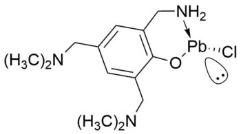 Plumbylenes may be stabilized by electron donation into the vacant orbital of the lead atom. The two common intramolecular modes are resonance from a lone pair on the atom directly attached to the lead or by coordination from a Lewis base elsewhere in the molecule.[21]