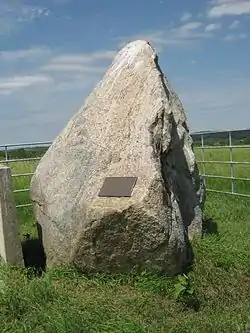 The Polled Hereford Breed Origin Site is a historic site located southwest of Indianola, Iowa, United States. The American owners of Hereford cattle in the 19th century knew that the breed occasionally produced calves that did not develop horns. They are known as polled, which means "naturally hornless."[2] As early as 1893 attempts were made in Kansas and Ontario in Canada to produce the hornless variant. Warren Gammon, a Des Moines lawyer, developed his plan after seeing polled Herefords at the Trans-Mississippi Exposition in 1893. With his son Bert, he leased 5 acres (2.0 ha) of a farm that was owned by the Angus Coal Mining Company. He acquired four bulls and ten cows of purebred Herefords that had failed to develop horns. Two cows were infertile and one bull had to be eliminated. Beside the windmill where the bull "Giant" was tied up the first planned mating with a Polled Hereford cow took place on February 21, 1902. By 1976, the Polled Hereford breed was numerically greater than the horned variety in the United States, and was about three-fourths of the Iowa's Hereford stock.[2] The Iowa Polled Hereford Association erected a historical marker at the site. The site was listed on the National Register of Historic Places in 1983.[1]