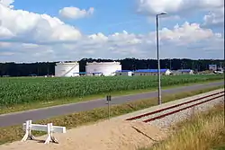 At the end of 2012, one of the main investment projects for the development of natural gas and crude oil fields in the Lubiatów-Międzychód-Grotów region (LMG project) was completed.[24] Test production had started in early August.[25] The newly erected facilities and 14 wells were expected to produce around 100 million cubic metres of natural gas and 300,000 tonnes of crude oil, and together with another Norwegian project, doubled PGNiG's total oil production levels.[26][27][28]