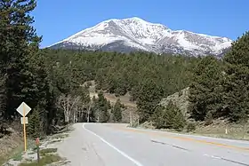 Poncha Pass (9,010 ft; 2,750 m) is a mountain pass in South-Central Colorado (USA). It lies between the San Luis Valley to the south and the valley of the Arkansas River to the north, and is one of the lowest mountain passes in the state.[1] It is in the saddle between the Sangre de Cristo Range, lying to the southeast, and the Sawatch Range, lying to the west and northwest. The small town of Poncha Springs lies about 6 miles (9.7 km) north of the pass. The pass has a mild approach on the northern side and a moderate 5% approach from the south, though it remains open all year round and does not normally cause problems for vehicles in winter.