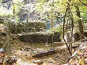 An aqueduct was built on the north side of the gorge in 1906 to bring water from Queensboro Brook and Popolopen Creek to West Point.[21] Another was built on the south side in 1929–30 to supply Bear Mountain State Park with water from Queensboro Lake.[22] Repairs to the latter required the closing of the combined Popolopen Gorge–1777 West–1779–Timp-Torne trails from the fall of 2008 to spring 2009.[23]