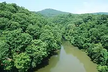 Popolopen is the name of several related landmarks mainly within the Hudson Highlands of Orange County, New York. These include a mountain, Popolopen Torne—or simply "The Torne",[1][2] and a short and steep-sided nearby valley officially called Hell Hole, but often Popolopen Gorge. Popolopen Creek runs through this valley. The Popolopen Bridge spans its mouth at the Hudson River and is crossed by Route 9W. Popolopen Lake feeds the headwaters of its namesake creek. Despite local usage, the United States Board on Geographical Names recognizes only the lake, creek and bridge as bearing the name "Popolopen."[3]