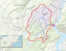 Popolopen Creek—also called Popolopen Brook[4]—is an approximately 10.4-mile-long (16.7 km)[9] stream, fed mainly by Lake Popolopen, Mine Lake, Stillwell Lake, and Weyant's Pond, eventually draining into the Hudson River. The creek's watershed, or drainage basin, covers about 30 square miles (77 km²) It runs mainly through lands occupied by the US Military Academy, to a gorge between Bear Mountain and Popolopen Torne, and drains to the Hudson River at Fort Clinton, New York.