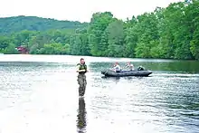 Lake Popolopen is a lake northwest of the mountain, on the West Point Military Reservation near New York State Route 293. Camp Buckner and Camp Natural Bridge are located at the lake, which is frequently used for training and recreation. The lake comprises the largest body of water at West Point, and is used for aquatic training such as scuba diving and amphibious assault.[4]