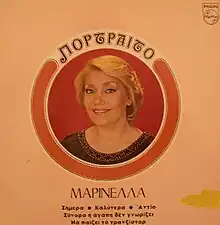 Marinella - Portreto (Greek: Μαρινέλλα - Πορτραίτο; English: Marinella - Portrait) is a compilation of recordings by popular Greek singer Marinella, under the PolyGram Records - Philips series "Portreto (Portrait)". This album is part of the compilation. It was released in 1980 in Greece[1][2] and includes 14 recordings by Marinella from 1974 - 1979 for the PolyGram Records.[3][4]