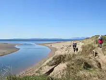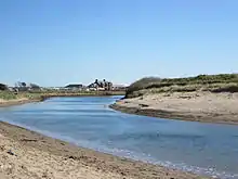 The Pow Burn is fed by a small loch near the estate of Coodham and is narrow until it reaches Prestwick, where it starts to widen. The Burn separates Prestwick and Monkton.[2] It crosses Prestwick Airport and flows through Prestwick Golf Course, where is serves as a natural obstacle. Prestwick Holiday Park overlooks the mouth of the burn, where it flows into the Firth of Clyde.