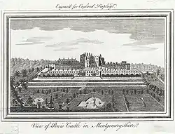 Herbert's descendent William Herbert, 1st Baron Powis (c.1573–1655), was a supporter of Charles I, and was granted the barony of Powis in 1629.[19] His loyalty during the English Civil War cost him his castle and his estates.[20] On 22 October 1644 Powis Castle was captured by Parliamentary troops and was not returned to the family until the restoration of Charles II in 1660.[21]