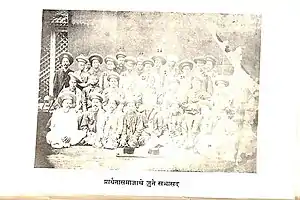 The Prarthana Samaj members were followers of the great religious tradition of the Marathi Sant Mat like Namdev and Tukaram. Although the adherents of Prarthana Samaj were devoted theists, they also worshipped formless god. They drew their nourishment from the Hindu scriptures such as Bhagavad Gita, Upanishads and used the hymns of the old Marathi "poet-saints" in their prayers.[1] Their ideas trace back to the devotional poems of the Vitthalas[2] as part of the Vaishnava bhakti devotional movements of the thirteenth century in southern Maharashtra.[3] The Marathi poets had inspired a movement of resistance to the Mughals. But, beyond religious concerns, the primary focus of the Prarthana Samaj was on social and cultural reform.