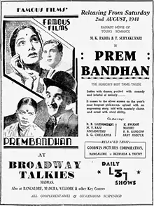 - ↑ "Prem Bandhan". The Indian Express. 2 August 1941. p. 2. Retrieved 21 January 2020.