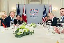 Johnson's first overseas trip as prime minister was a visit to Berlin to meet German Chancellor Angela Merkel on 21 August 2019. He visited France to hold meetings with French President Emmanuel Macron the next day. From 24 to 26 August he attended his first multilateral meeting with world leaders as prime minister, when he travelled to Biarritz for the 45th G7 summit.