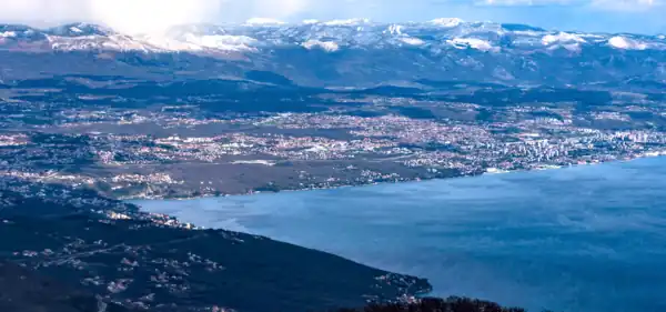 Rijeka Bay with the Adriatic Sea and Gorski Kotar mountains.